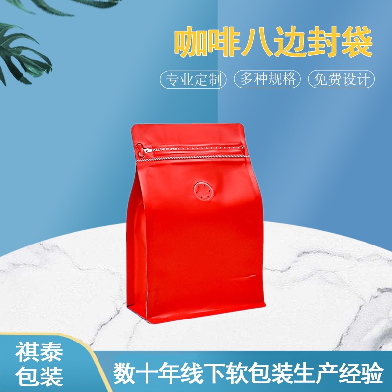 コーヒー袋の一方の空気弁のクラフト紙の八辺の密封袋のコーヒー豆の包装袋の食品級のアルミ箔の袋のメーカーは直接販売します。