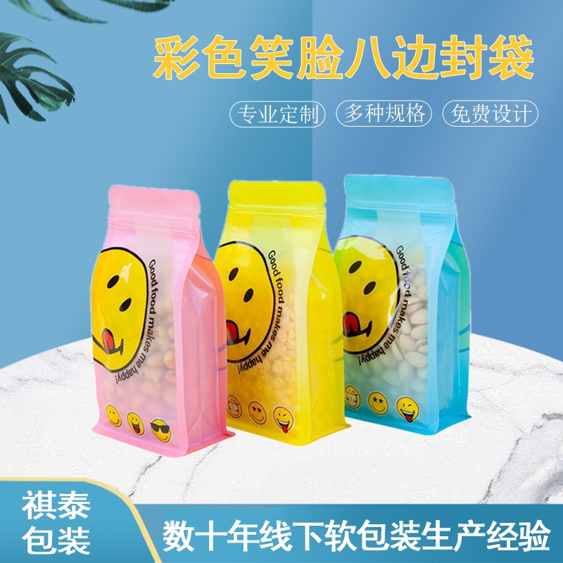 カラーUV笑顔八辺封ポケットプリント自封袋厚手五穀雑穀食品包装袋密封袋
