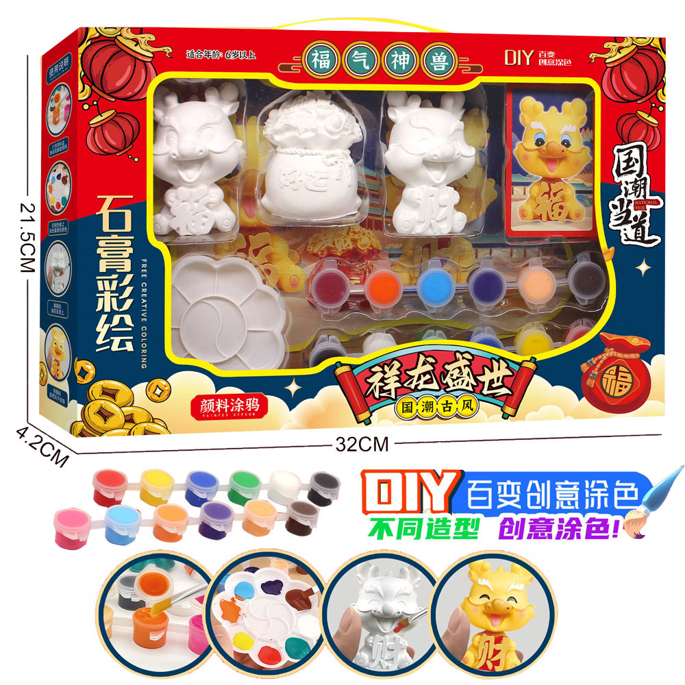 龍年マスコット公仔塗装石膏人形彩色落書き児童手作りdiy玩具中号幼稚園