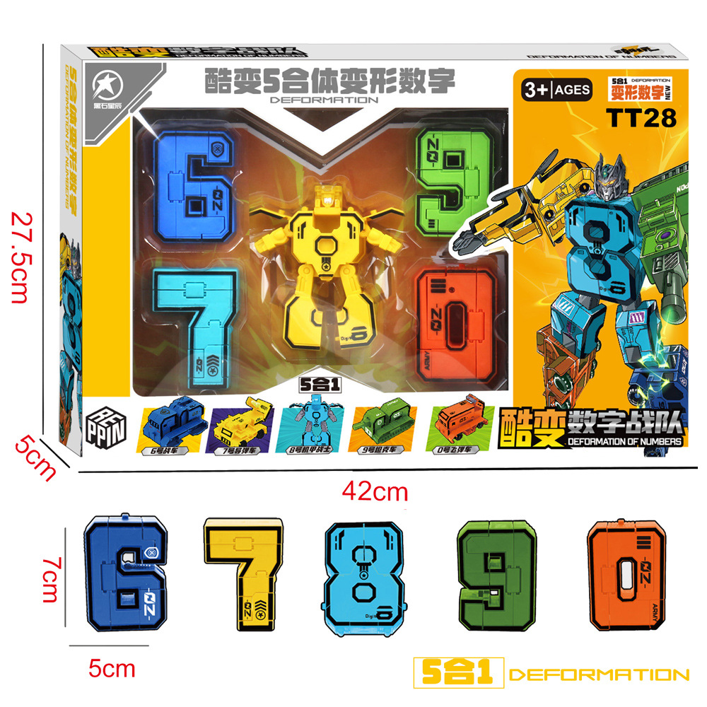 子供用デジタル玩具変形ロボット5合1は合体セットの益智男の子玩具の露店卸売りができます。