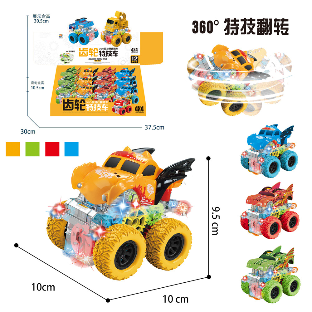 ディザトーン同型児童アニメ萌え趣味360度タンブリング特技車ライト付き歯車慣性玩具車卸売り