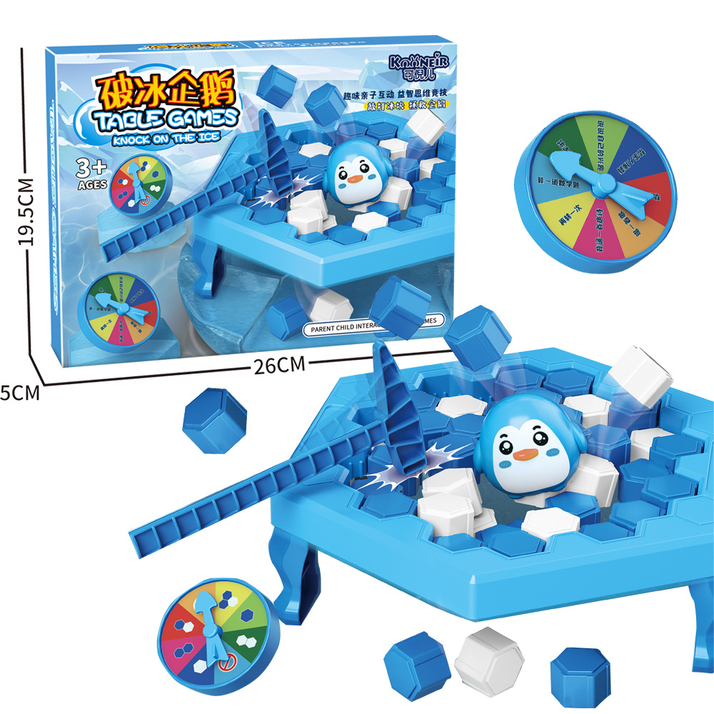 ペンギンを救って氷を割る台のインタラクティブなデスクトップの対戦ゲームは氷の幼稚園のクラスのおもちゃの贈り物を叩きます。