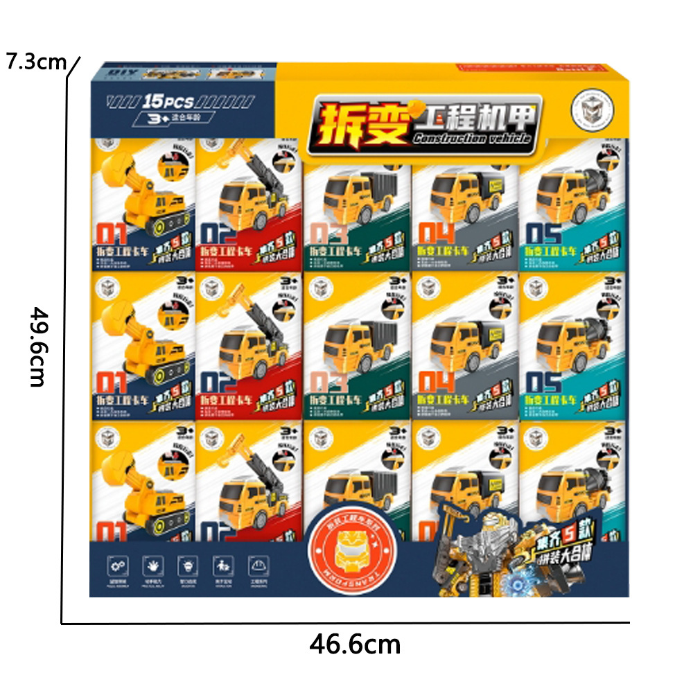 子供の変形ロボットの組み立て工事車の機甲5合1のおもちゃの自動車の模型の育成訓練機関の贈り物の露店