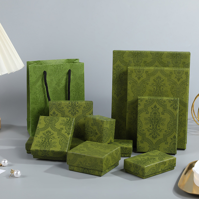 森系天地蓋伴手ギフトボックス手提げギフトボックス緑ネックレスボックス誕生日ギフトボックス伴手ギフトボックス