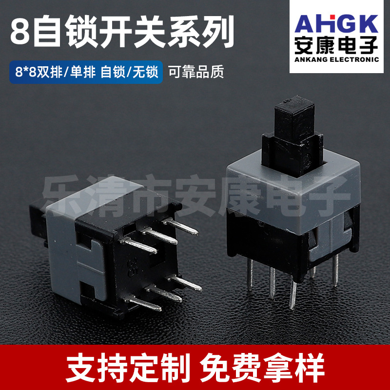 セルフロックスイッチ8x8二列ボタンスイッチ8*8二列六脚黒柄セルフロック/ロックなしボタンスイッチ