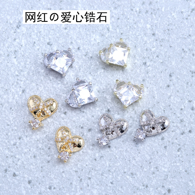 ネイルアート愛ジルコンアクセサリー卸売りネット赤真金軽豪華流蘇桃心ダイヤモンドdiy爪装飾ドリル
