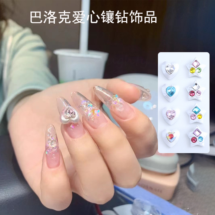 ネットの赤い新型のバロックの真珠の漆の五芒星の水晶の愛の合金はドリルを入れてネイルアクセサリーのdiyの部品を指します。