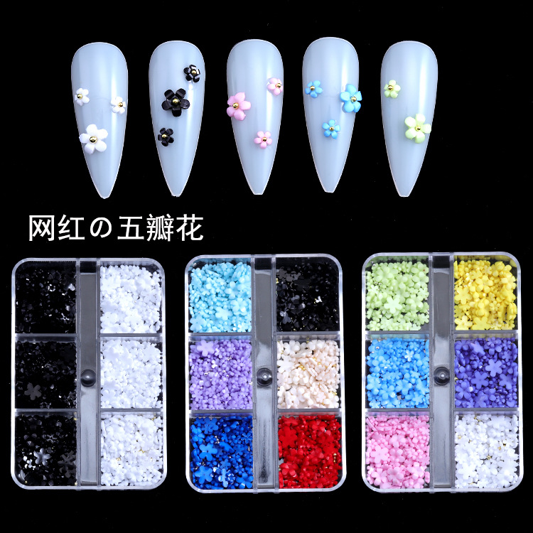 日本式の混載服の雅風の3d立体の小さい花のネイルアクセサリーの新型のネットの赤い樹脂の5弁の花の爪の装飾