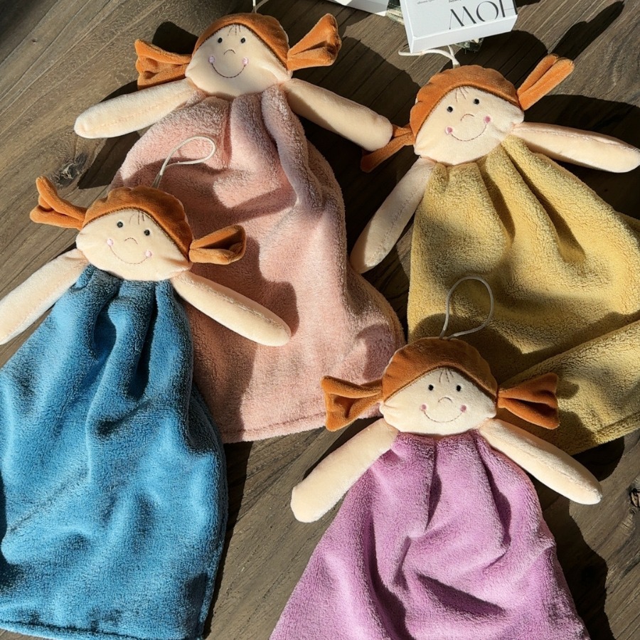 新しい漫画の人形のタオルのサンゴの毛の吸水の手のタオルのかわいいファッションの掛け式の柔らかい