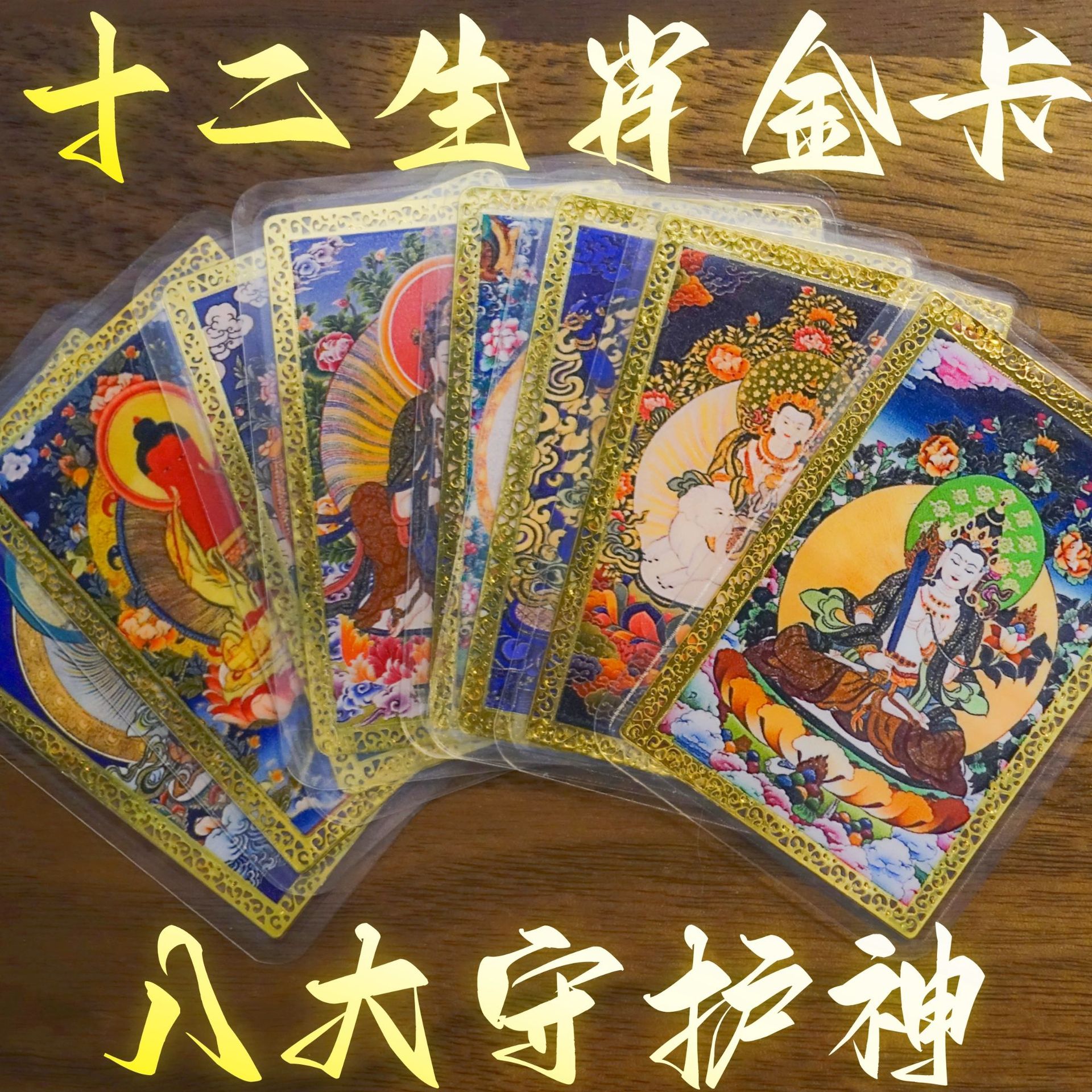 新品チベット十二支カード、プラスチック封入、八守護神彩画金カード、携帯仏カード、呪文カード、在庫あり
