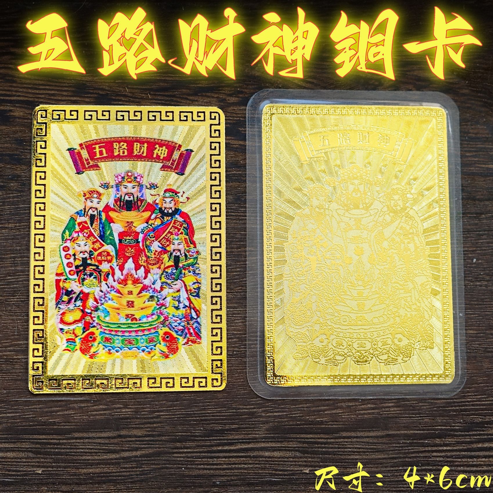 現物五路財神金カード携帯財神カード銅カード精緻文財神仏カードメーカー直供釈心