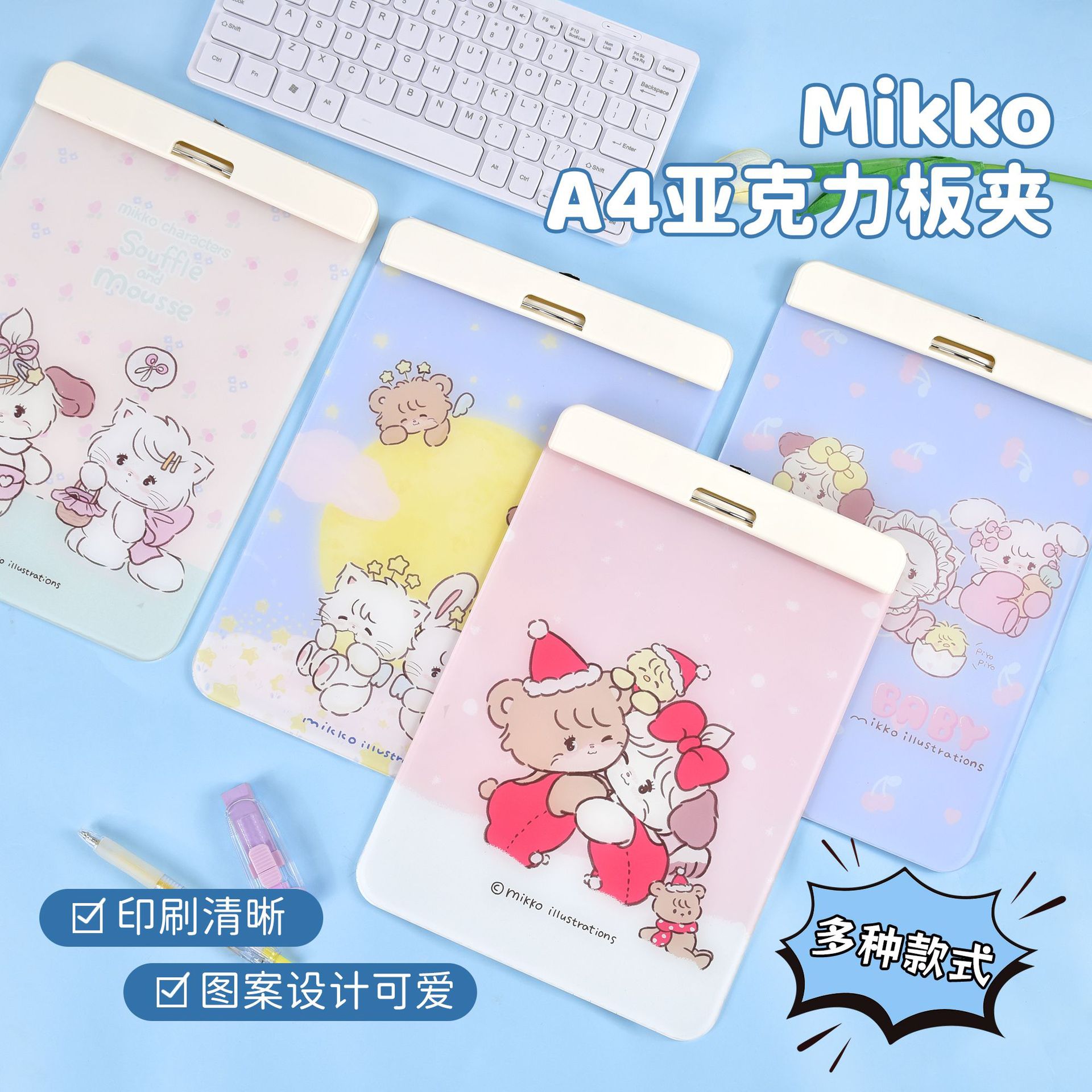 MikkoファイルボードホルダーA4ファイルホルダー可爱い文房具勉强オフィス机パッド试験板画画板収纳