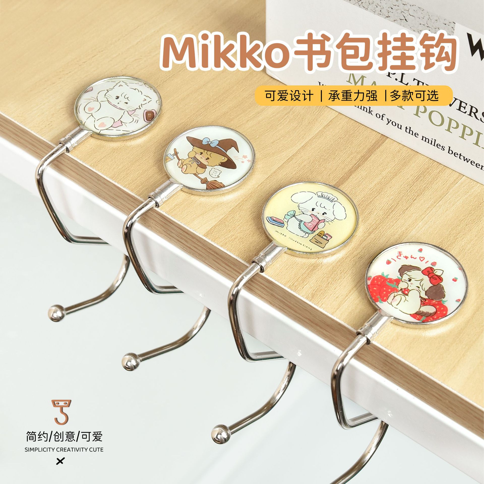 Mikko漫画かばんフックデスクトップバッグ神器穴なしフック貼り付け不要移動式バッグフック