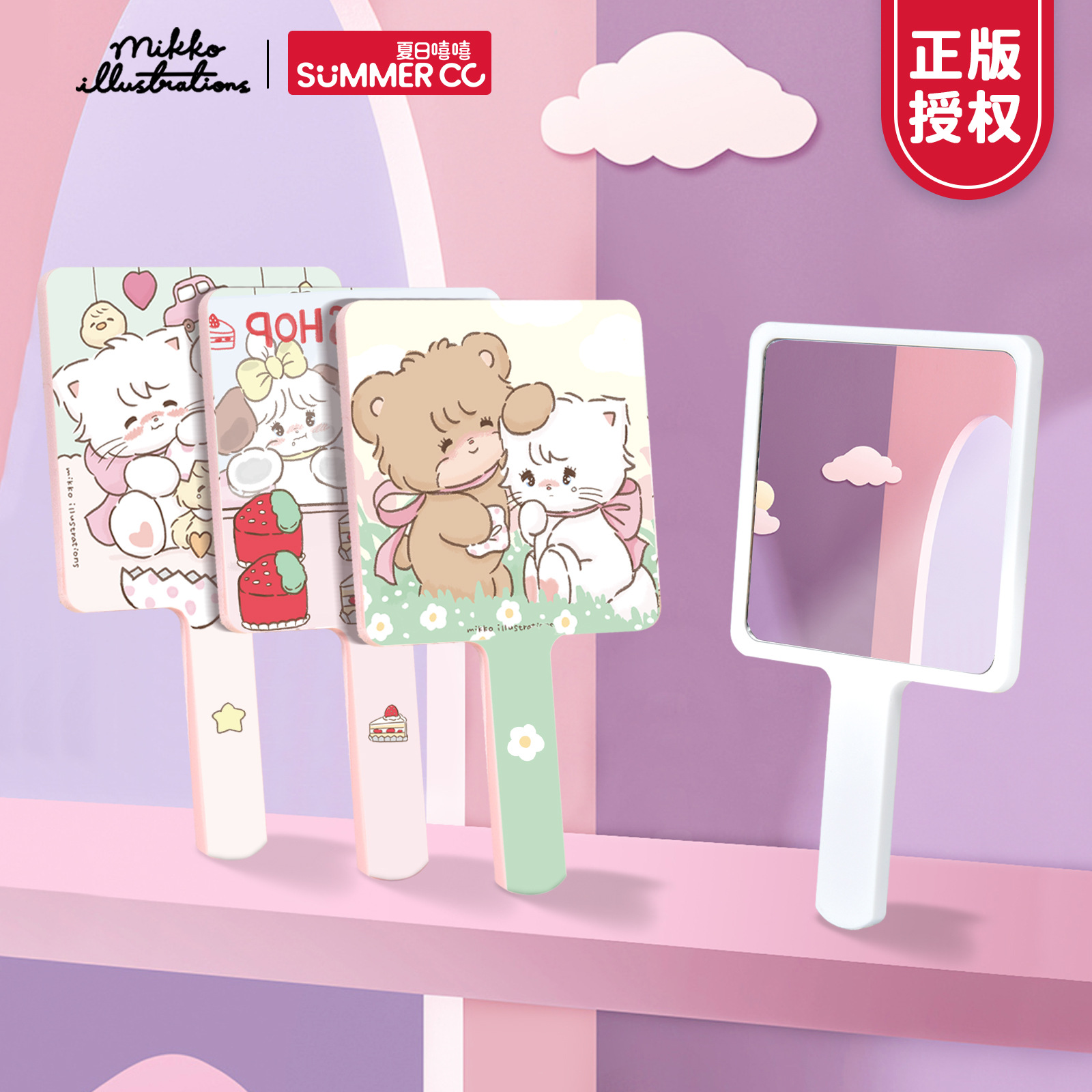 Mikko正規ライセンス * 手持ち鏡高精細化粧鏡少女心ハンドル鏡角型メイク直し鏡