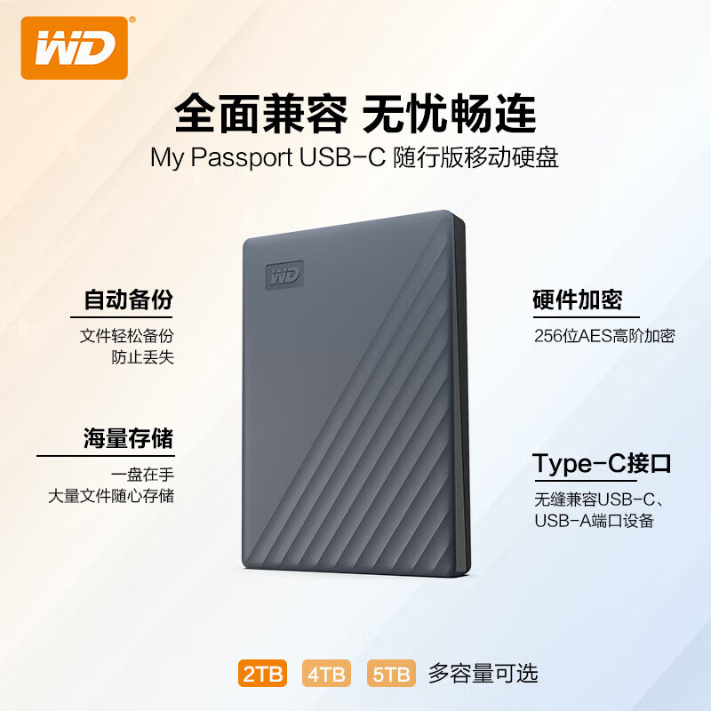 モバイル メカニカル ハード ドライブ type-c My Passport パッケージ 2.5inch グレー