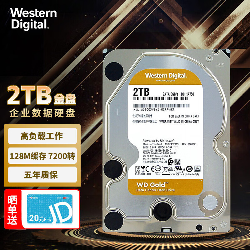オリジナル 2TB エンタープライズクラス メカニカル ハード ドライブ WD Gold Western Digital ゴールド ディスク SATA 7200