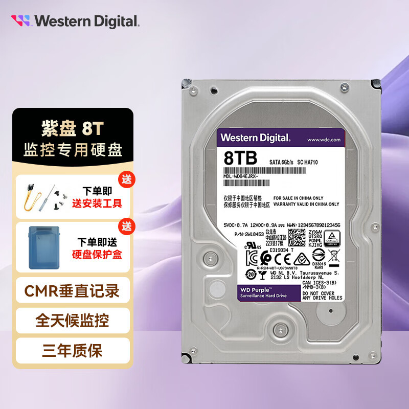 純正品 (WD) 紫盤監視級ハードディスクカメラビデオ録画DVR/NVRデスクトップパソコン