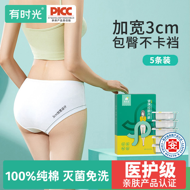 女性用の幅広ヒップ使い捨て下着、純綿旅行、大人旅行用使い捨てショーツ、綿下着、5 組