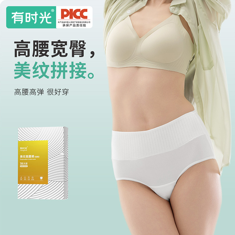 女性用使い捨て下着、ハイウエスト、幅広ヒップ、滅菌、洗濯不要、毎日使い捨てパンツ、7A抗菌産後下着、幅広ウエスト