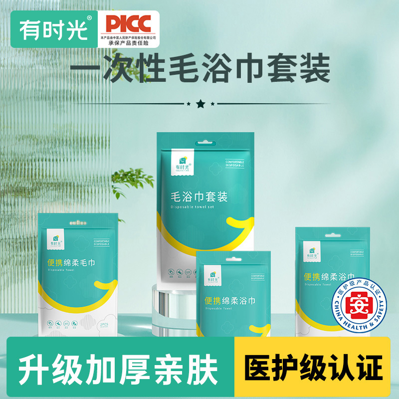タイムワンタイムバスタオル、フェイスタオル、個別包装、厚手、ソフトバスタオル、Lサイズ、ポータブル