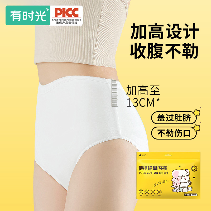 女性用使い捨て下着、純綿、洗濯不要のショーツ、滅菌旅行用産後用品、ハイウエストマタニティ