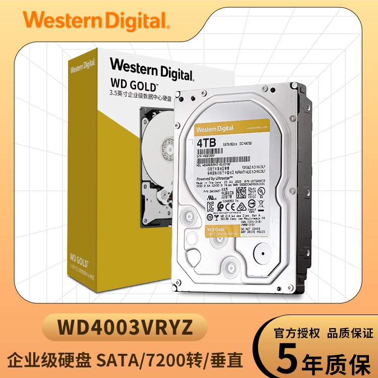 Western Digital WD WD4003VRYZ 4T ゴールドディスク エンタープライズクラス メカニカルハードドライブ NAS ネットワークストレージ SATA7200 rpm