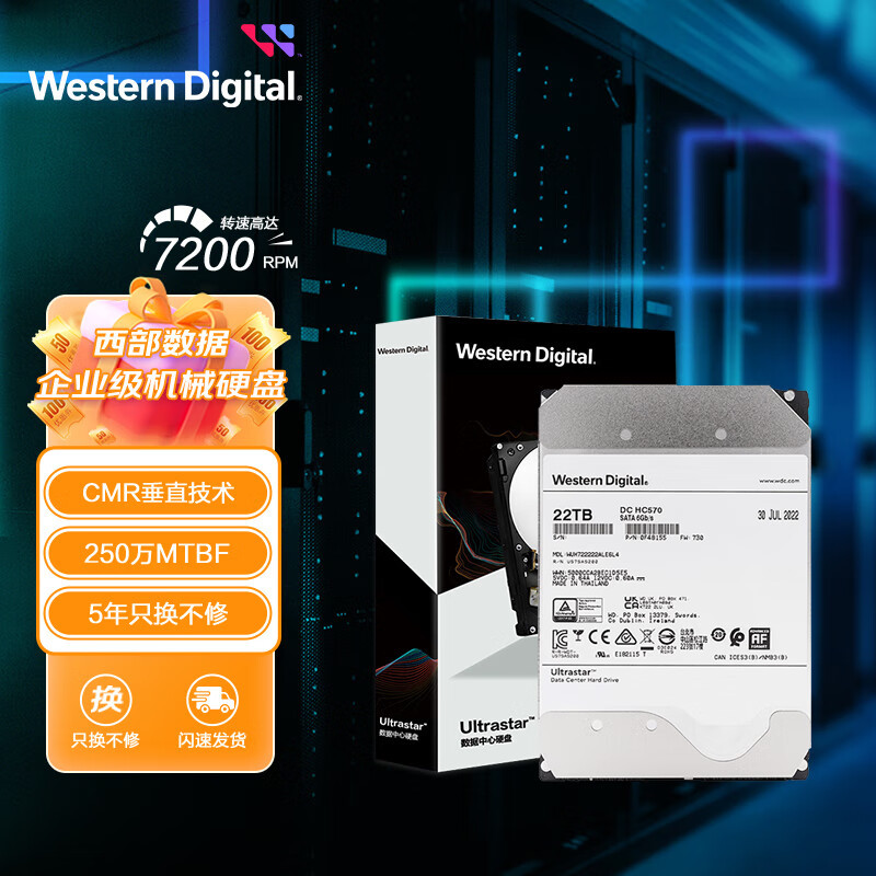 オリジナル ハード ドライブ レンタル エンタープライズ グレード ヘリウム ディスク HC570 22TB 512MB CMR (WUH722)