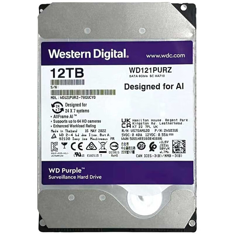 海康/威視HIKVISIN監視ハードディスク西数紫盤3.5インチSATAインターフェイス12TB WD