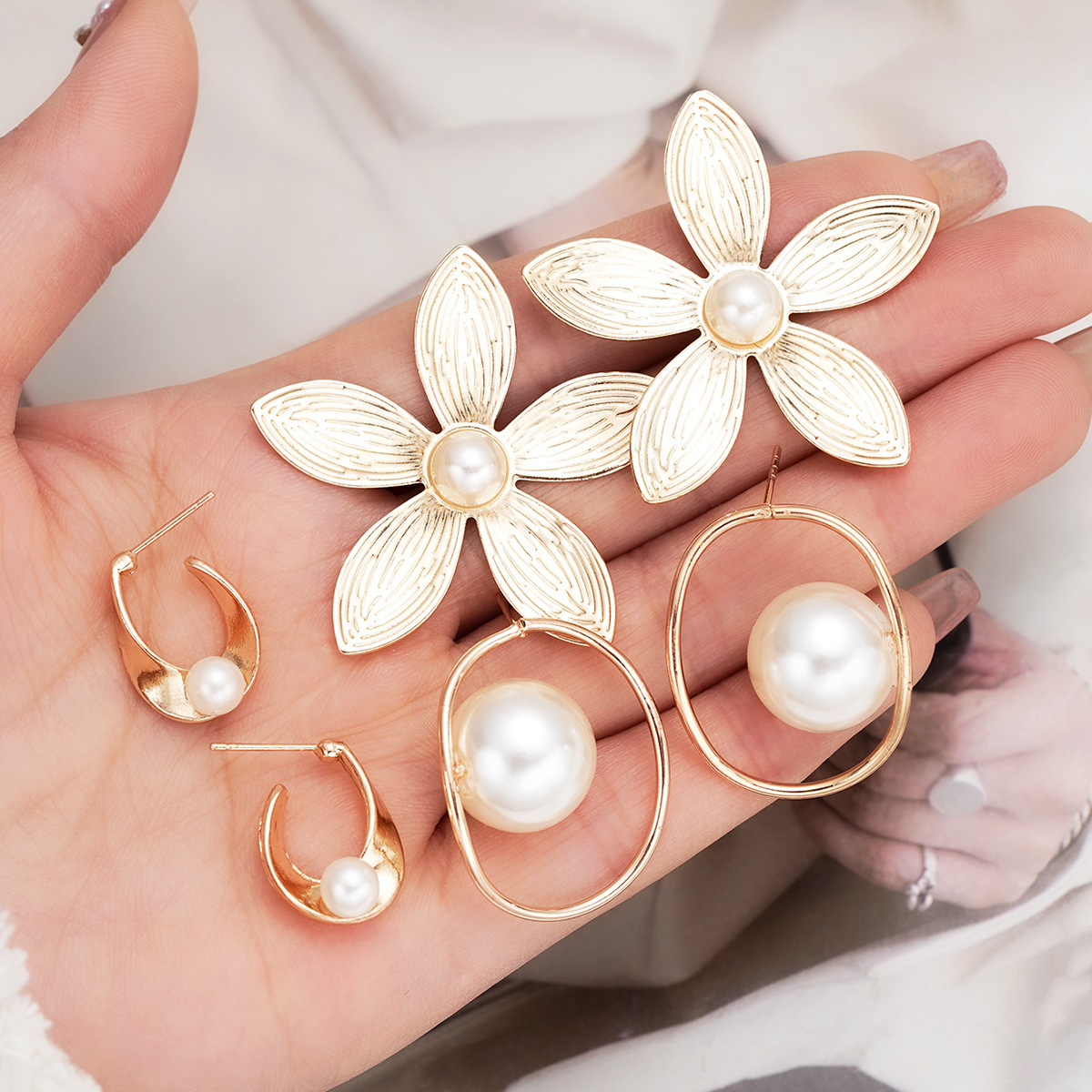 欧米の国境を越えて人気のあるアクセサリーファッションのアイデアが洗練されたC形の幾何学真珠金属イヤリング18点セットのイヤリング女