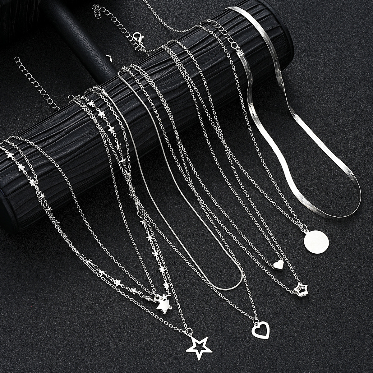 新しいクロスボーダークールスタイル中空五芒星ハート型ペンダント多層ネックレス女性のライト高級パーソナライズされたネックレス
