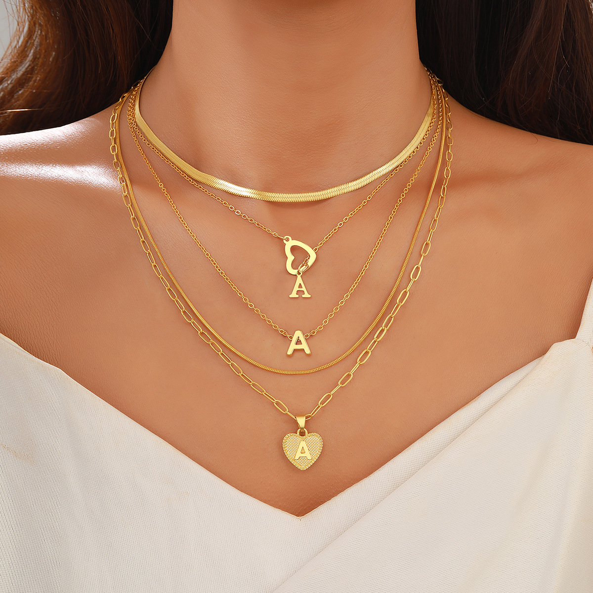 アマゾン欧米国境を越えた宝飾品ファッション気質高級デザイン感鎖骨鎖小衆アルファベットネックレス5点セット