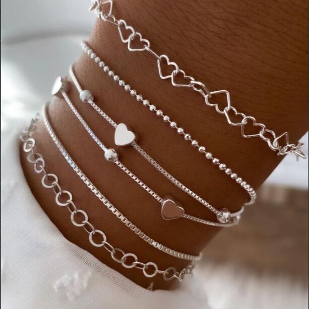 欧米のクロスボーダーの極めて簡単な愛の玉のチェーンのブレスレットの6セットの手の金属の多層のチェーンのスーツのブレスレットの女性