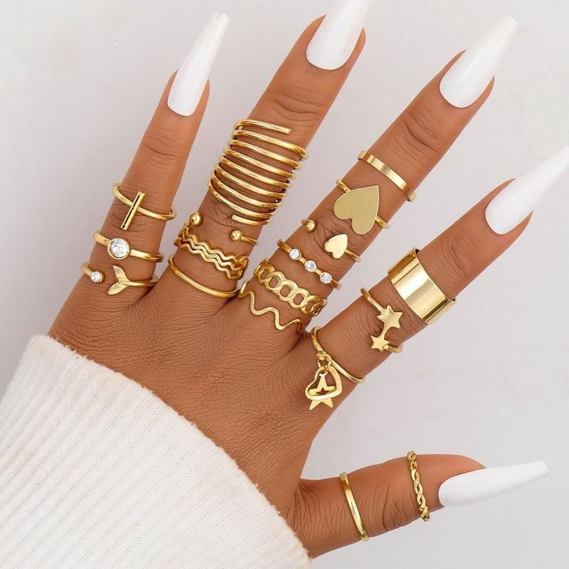 国境を越えた欧米五角星魚尾波指輪18点セット金色ヒップホップ個性関節指輪セット