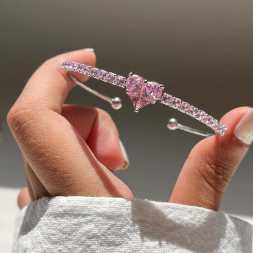 クロスボーダーの清新なファッションはピンクのダイヤモンドの愛のジルコンのブレスレットを象眼します。