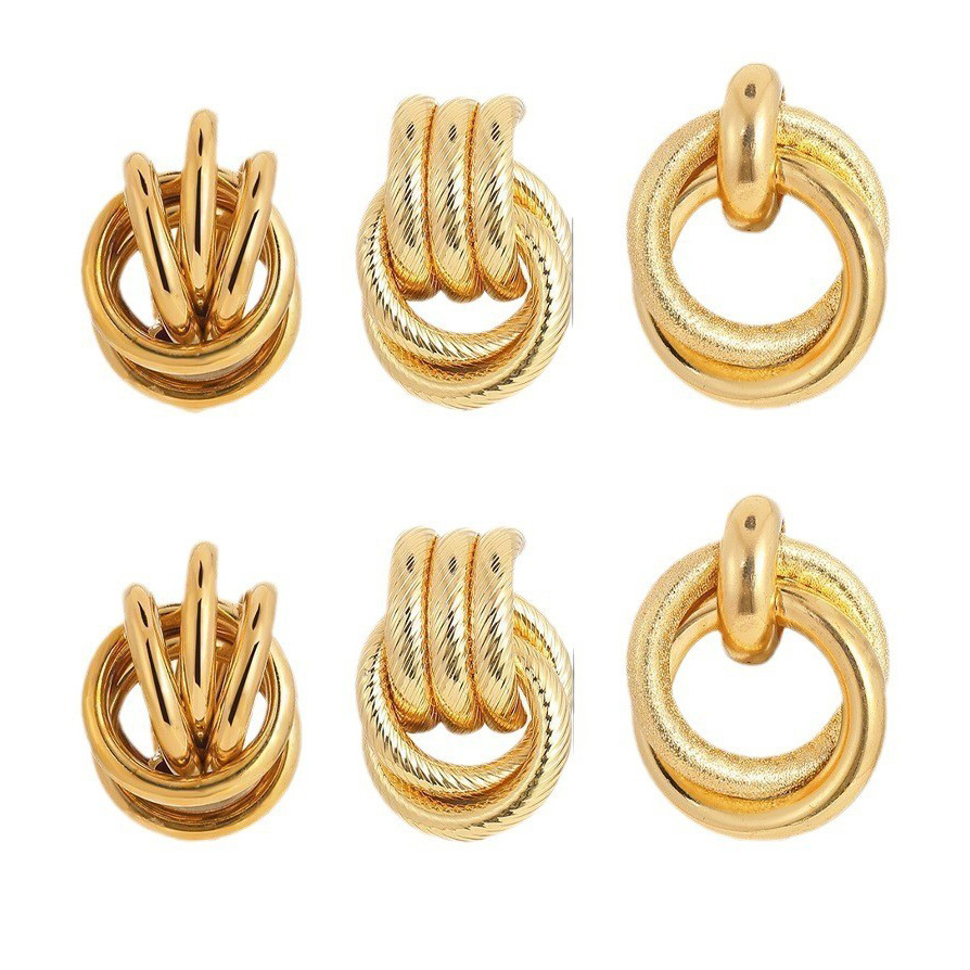 国境を越えた欧米の耳飾り金色のレトロな質感気質多層麻花イヤリング個性誇張創意イヤリングセット
