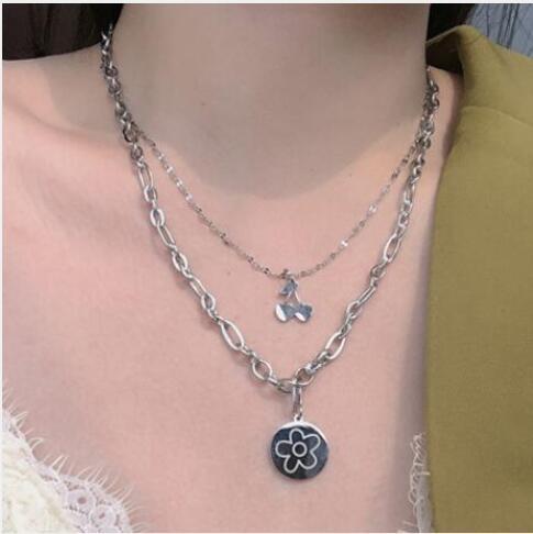 欧米の越境さくらんぼのペンダントの小さい花の二重は簡単で、ネックレスの女性の創意的な個性のデザイン感のセーターのチェーンを重ねます。
