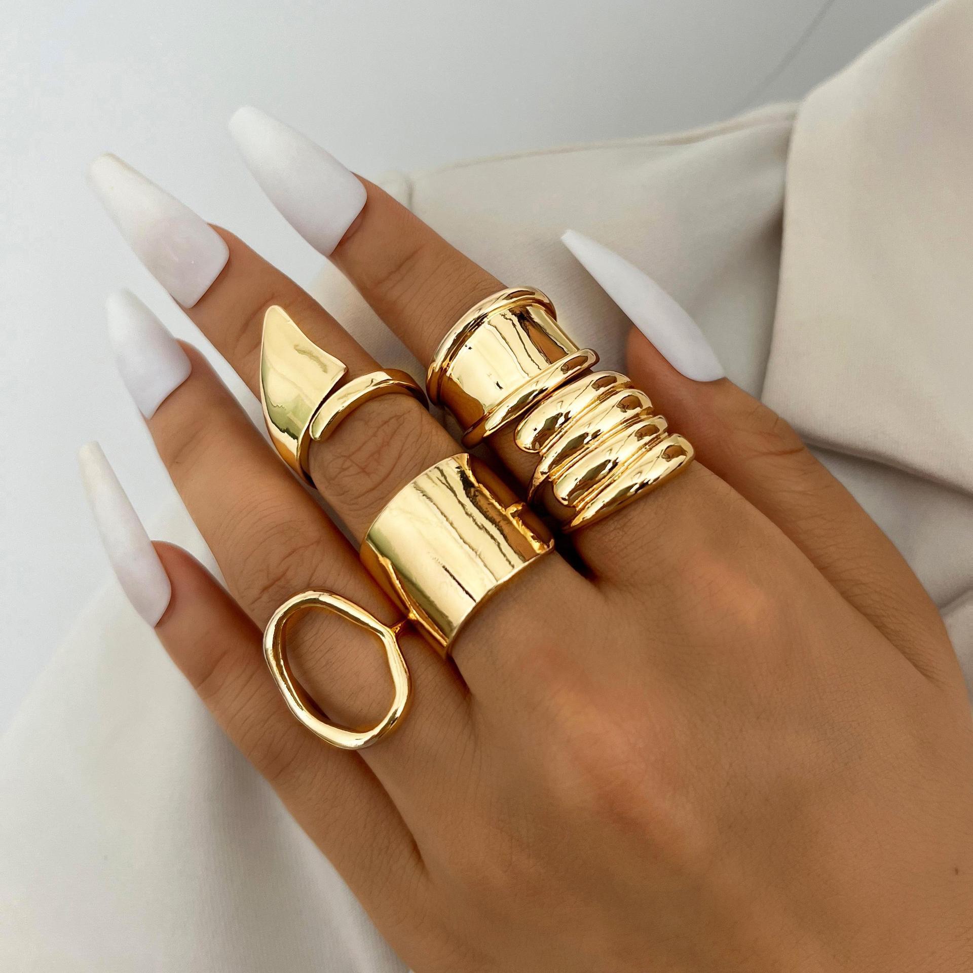 国境を越えた対外貿易幾何デザイン感セットリング関節リング欧米金属風小衆開口指輪卸売り