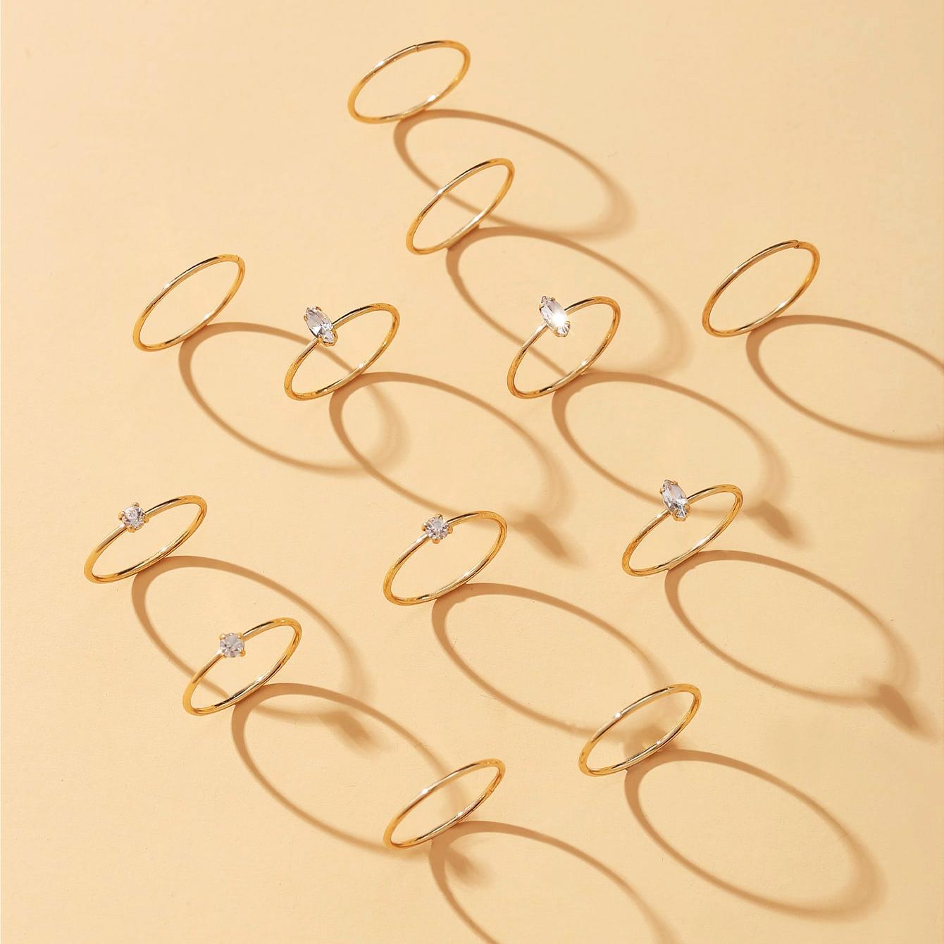 欧米のクロスボーダーの新型のダイヤモンドの指輪のセットのシンプルな幾何学の素のリングの点のダイヤモンドの指輪のセットの12セットのライニング