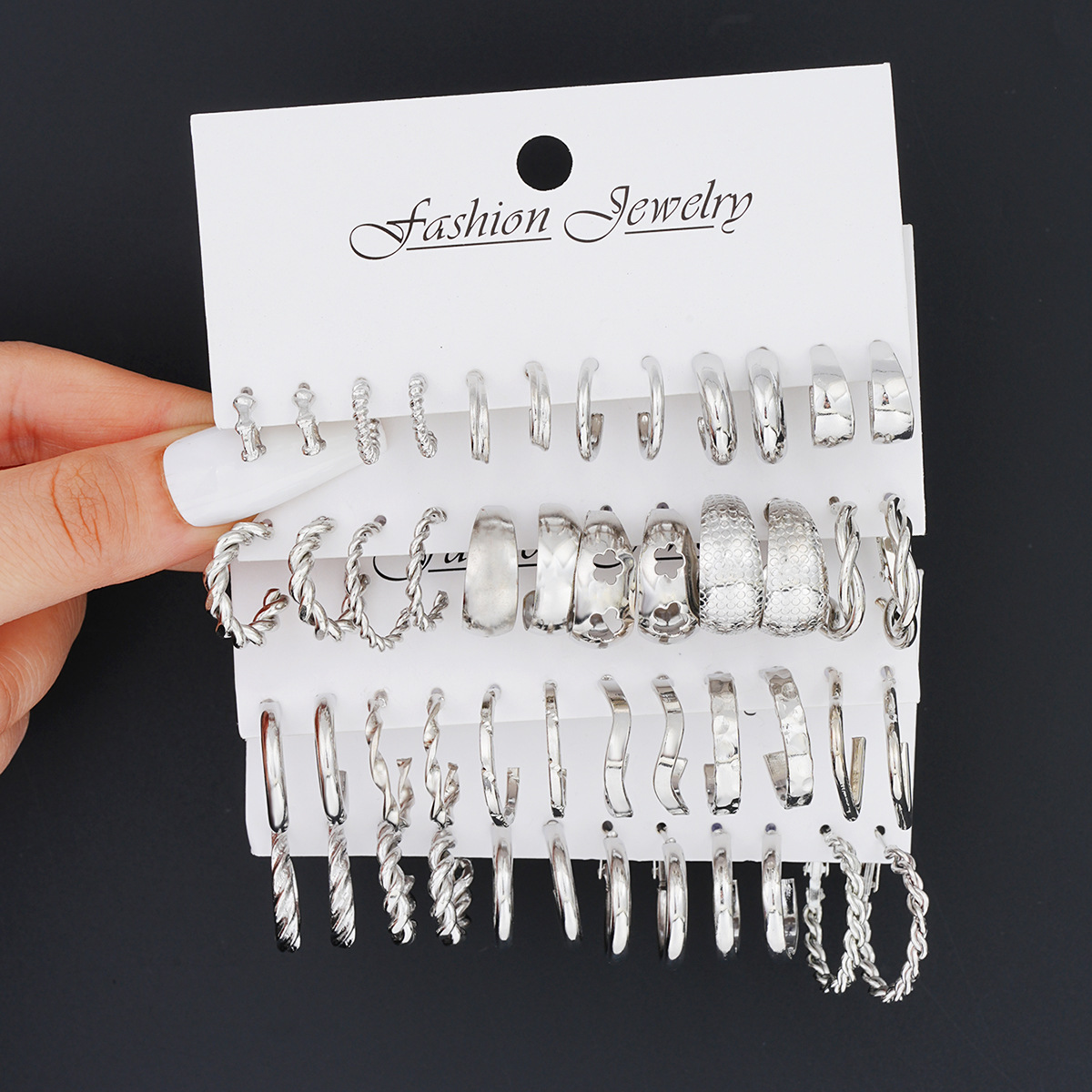 欧米の国境を越えた新型ファッションC型合金イヤリング24点セットシンプルins個性イヤリングアクセサリーセット卸売り