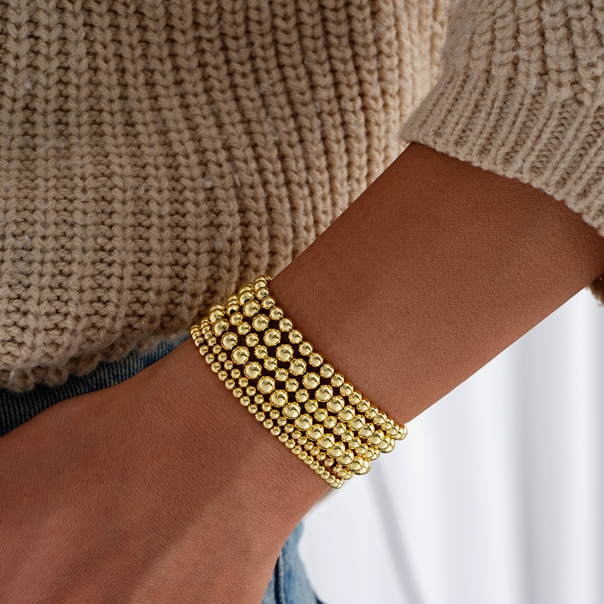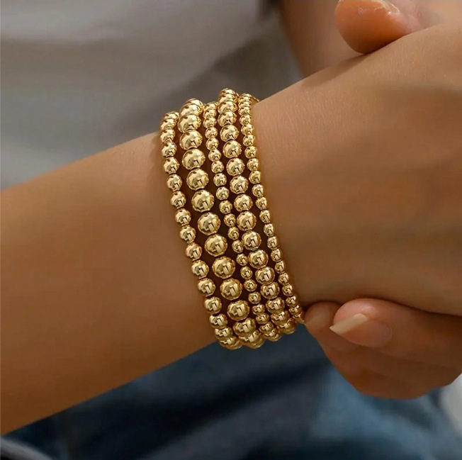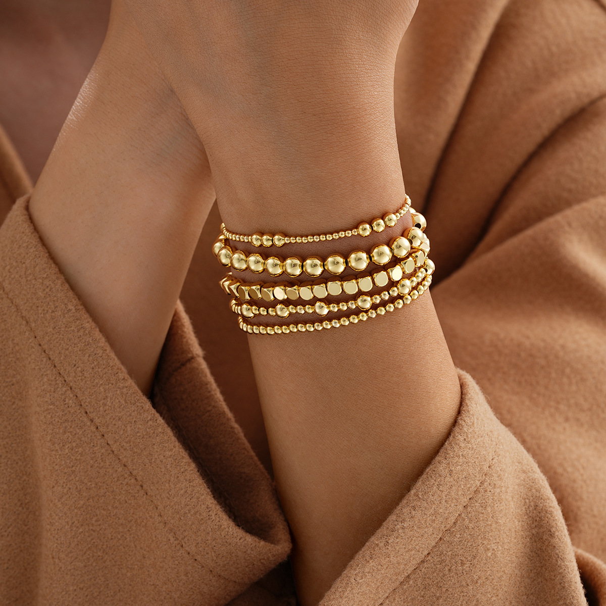 国境を越えて欧米風真金メッキビーズ弾力手串5点セットファッション高級ビーズブレスレット卸売り