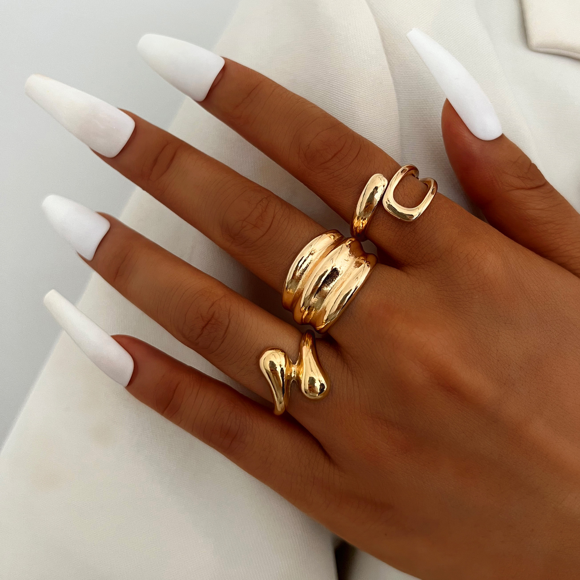 欧米のクロスボーダー新型アクセサリーファッション創意高級感小衆金属素輪弧形水滴指輪3点セット