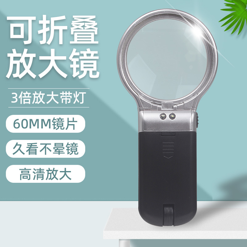 クラウン信用折り畳み可能三倍ルーペ手持ち式卓上両用ランプ付き照明3x
