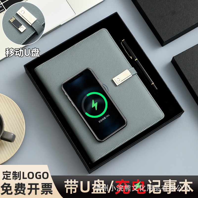 新商品ビジネスギフトノート無線充電セット充電宝uディスク手帳カードスロット付きバインダーブック