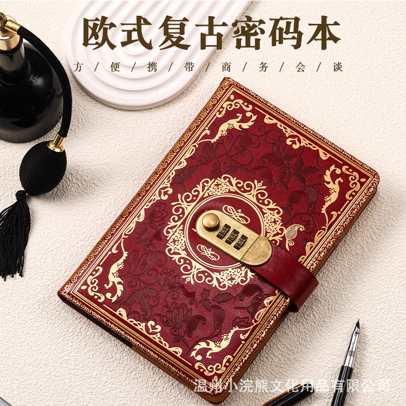 A5 レトロパスワード日記ロック付き厚みのあるクリエイティブハンドブック学生ノート文具ノートブック