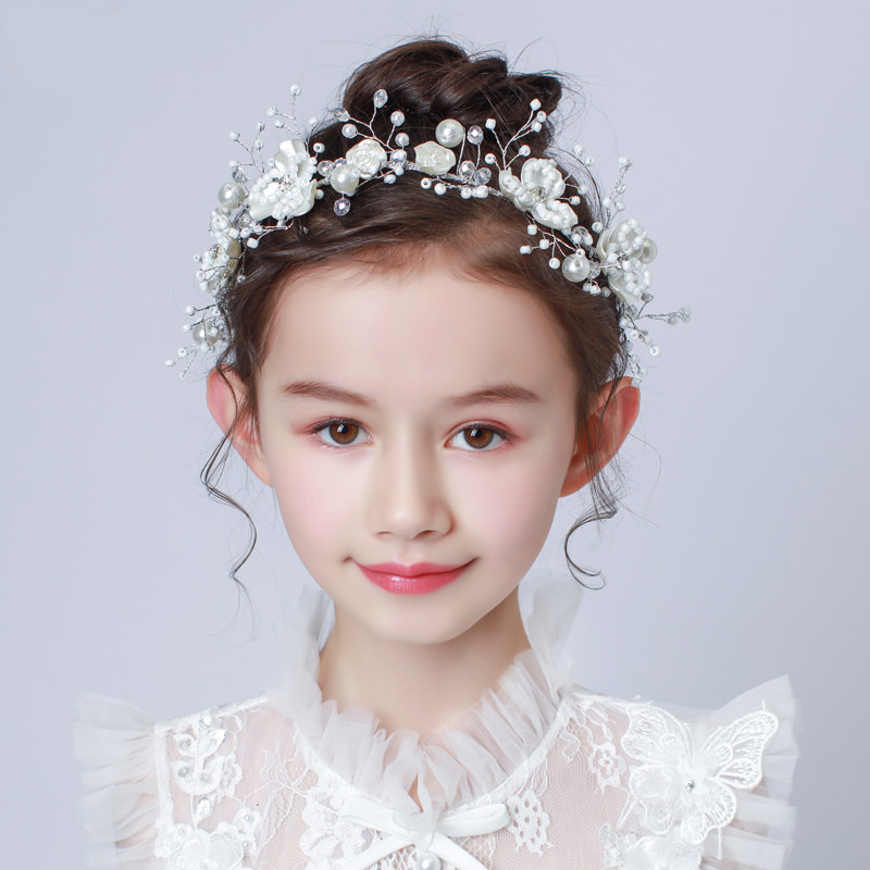 子供用ヘアアクセサリー、ヘアピン、花輪、ヘアバンド、ヘアクリップ、女の子用ウェディングドレス、舞台衣装、パール、リトルプリンセス