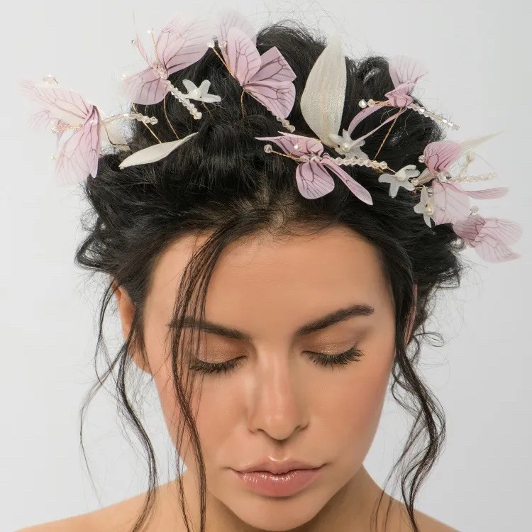 ロシアの新しいブライダルヘッドアクセサリー、森の妖精、超妖精、韓国の甘くて雰囲気のある紫色のガーゼウェディングガーランドヘアアクセサリー