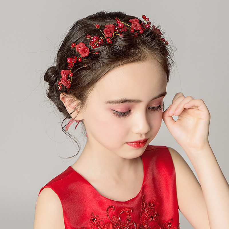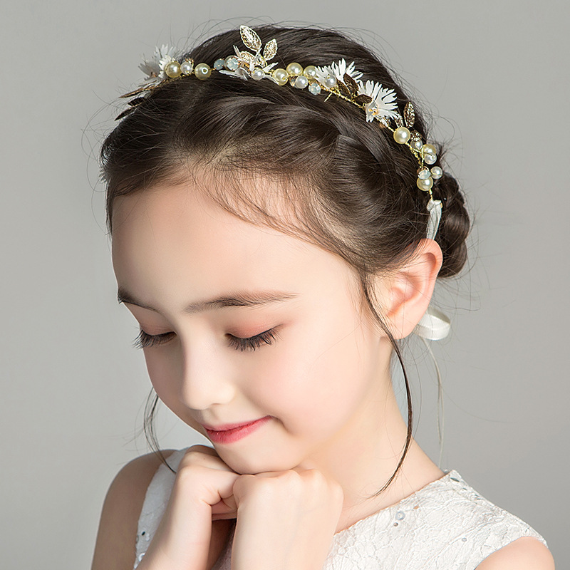 フラワーガールドレス、花輪、ヘッドドレス、誕生日、子供、プリンセス、ヘアアクセサリー、韓国、女の子、ヘアフラワー、舞台用ヘアバンド、リボン