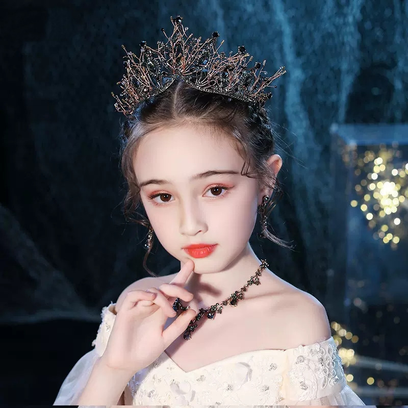黒い韓国式の子供の王冠の頭飾りの王女の子供の赤ちゃんのドリルの誕生日の王冠のパーティーのショー