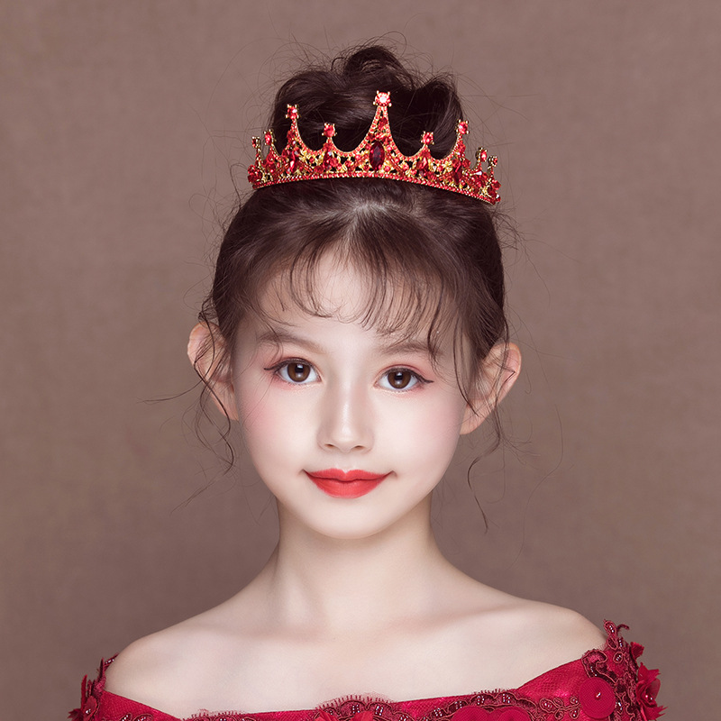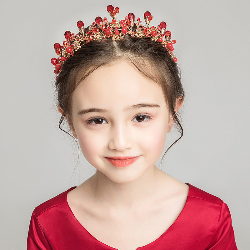 国境を越えた新しい子供の王冠の頭飾りの女の子の赤い真珠の王冠のドレスのカチューシャの合金のドリルの学生は出演します。