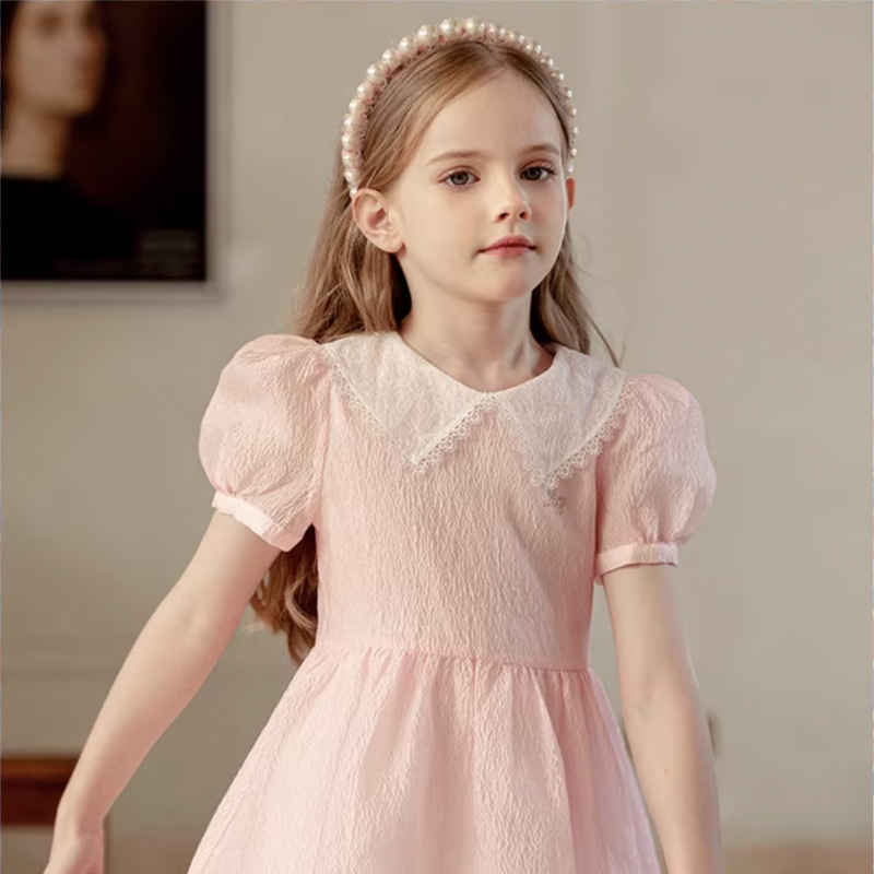 欧米の女の子の王女の髪飾りの子供のピンクのガーゼは真珠のカチューシャの子供の頭飾りの女の子の森系の仙美のカチューシャを持ちます。